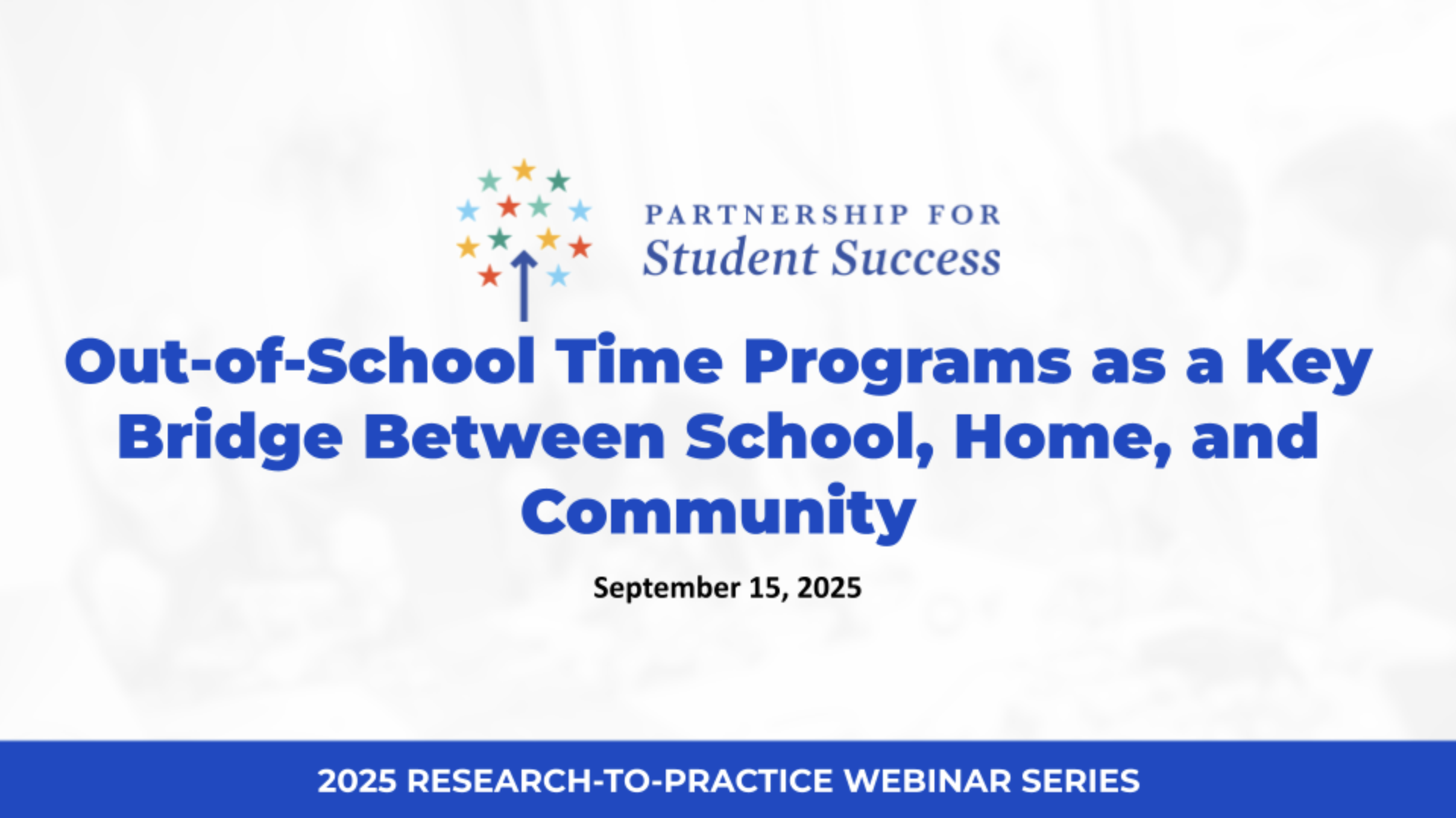 In this installment of the Research-to-Practice webinar series, hosted by the Partnership for Student Success on September 15, 2025, we explored the research behind the impact of out-of-school time (OST) programs on in-school priorities, such as academic achievement, student engagement, and attendance.