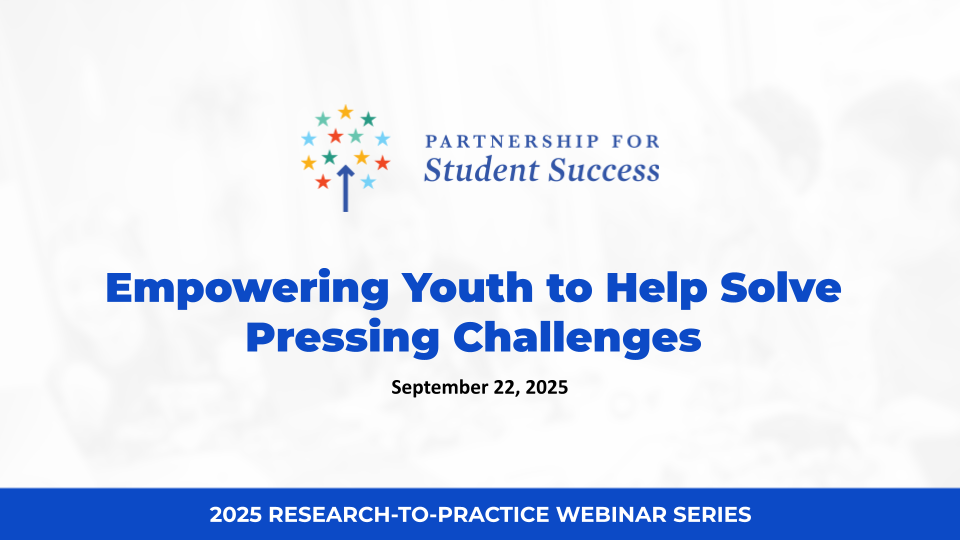 In this installment of the Research-to-Practice webinar series, hosted by the Partnership for Student Success on September 22, 2025, we explored strategies for empowering youth to help solve pressing challenges.